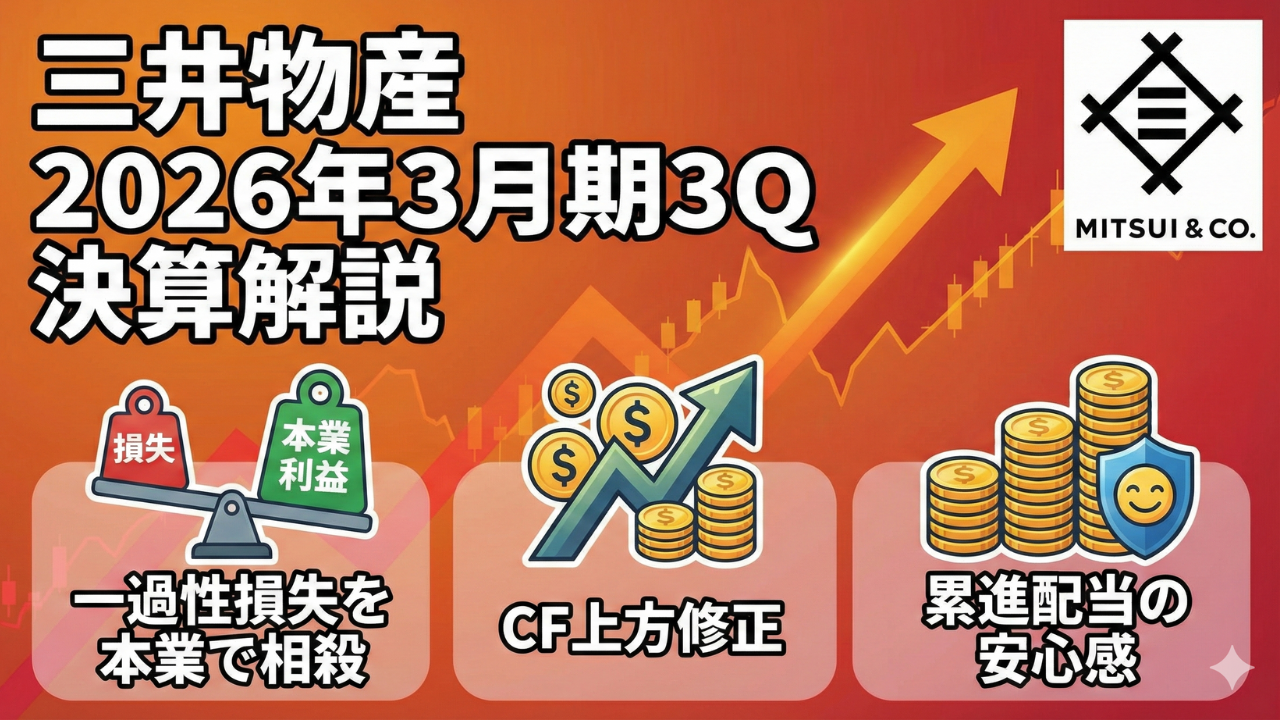 【三井物産(8031)決算解説】2026年3月期3Q:一過性損失を本業で相殺、CF上方修正と累進配当の安心感