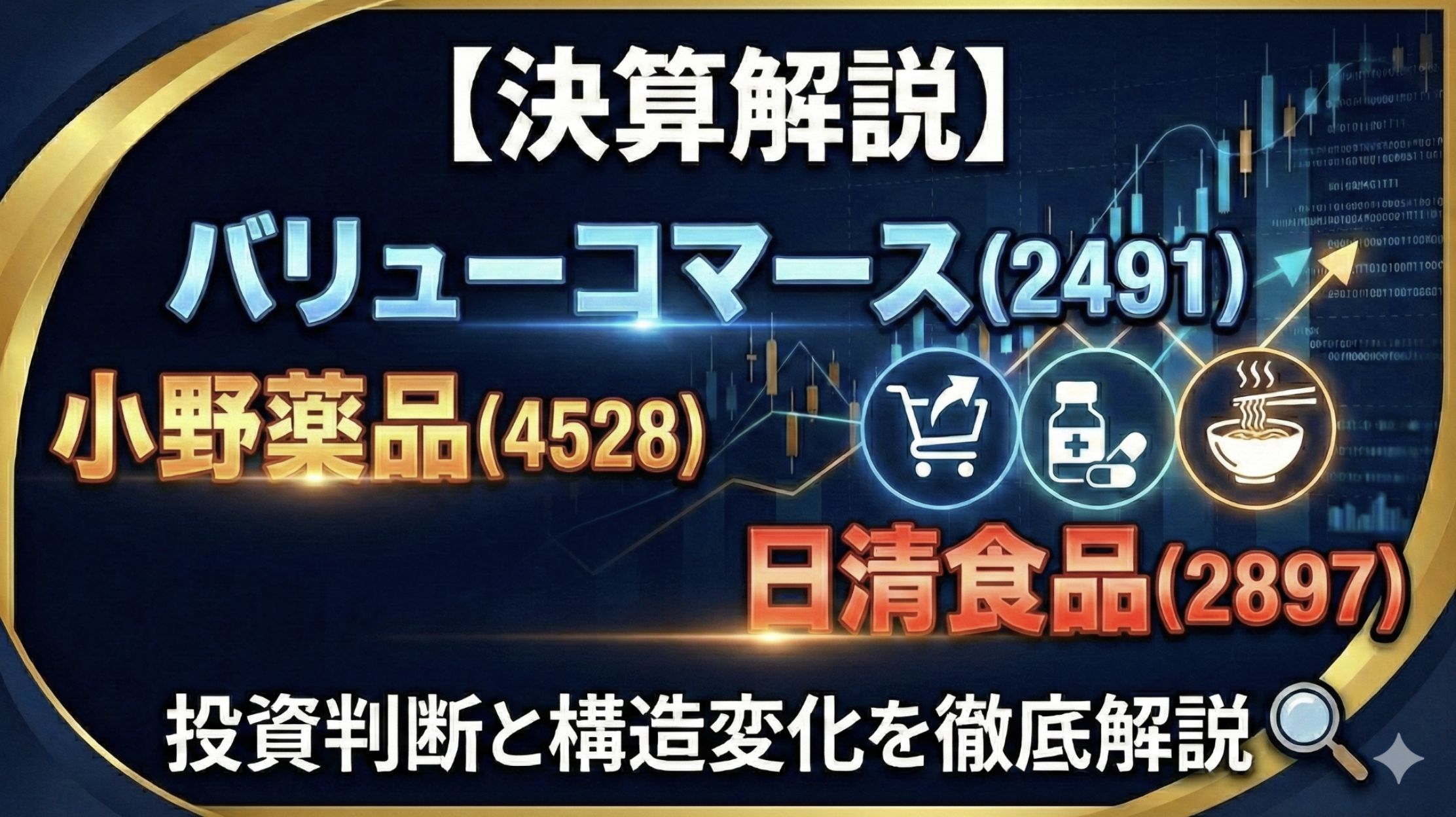 【決算解説】バリューコマース(2491)・小野薬品(4528)・日清食品(2897)の投資判断と構造変化を徹底解説