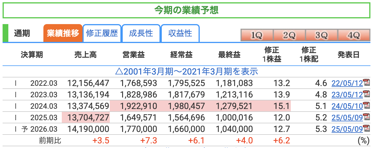 【ポイント】 前期(2025年3月期)は13兆7,000億円でしたが、そこからさらに伸ばして、14兆円の大台に乗せる計画です。 今回の中間決算で、グローバル事業が大きく伸びていたことを考えると、この「過去最高レベルの売上目標」も十分に射程圏内と言えそうです。