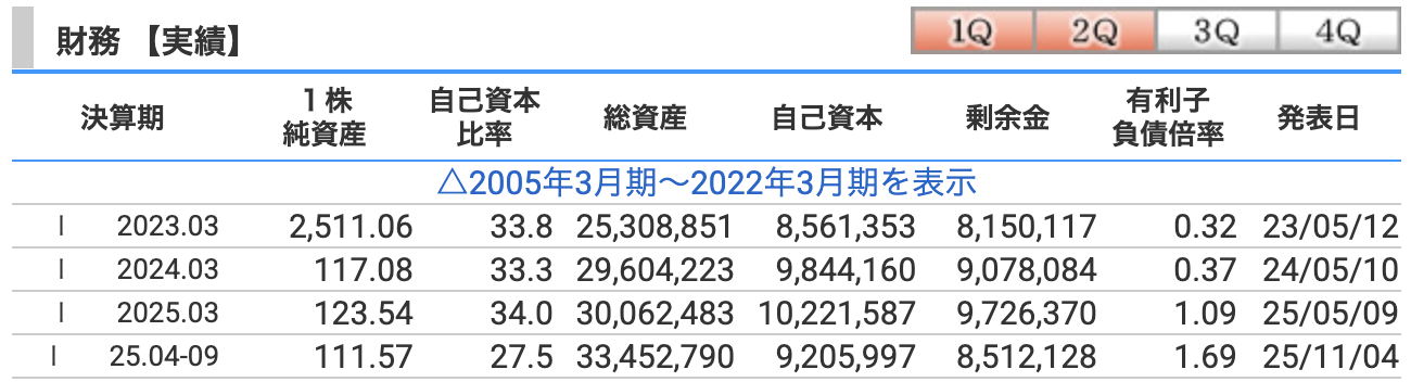 有利子負債が増加し自己資本比率が変化しましたが、これは金融事業の強化(住信SBIネット銀行の子会社化)や成長投資へ資金を回した結果であり、経営陣が明確に「成長」へ舵を切った本気度を感じます 。 -