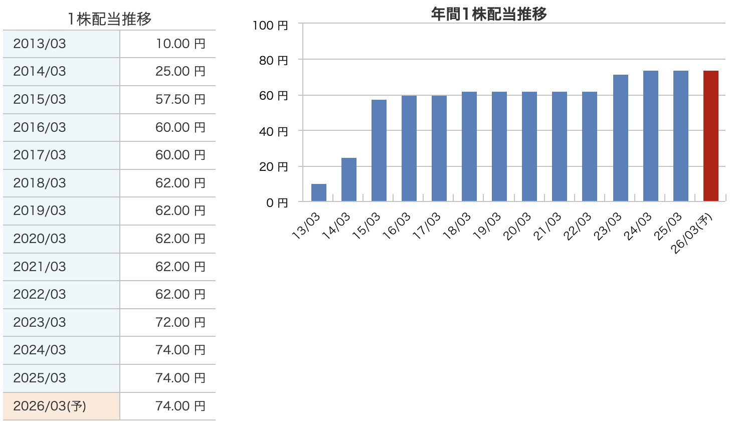 今期(2026年3月期)の予想:年間74円(中間37円、期末37円)