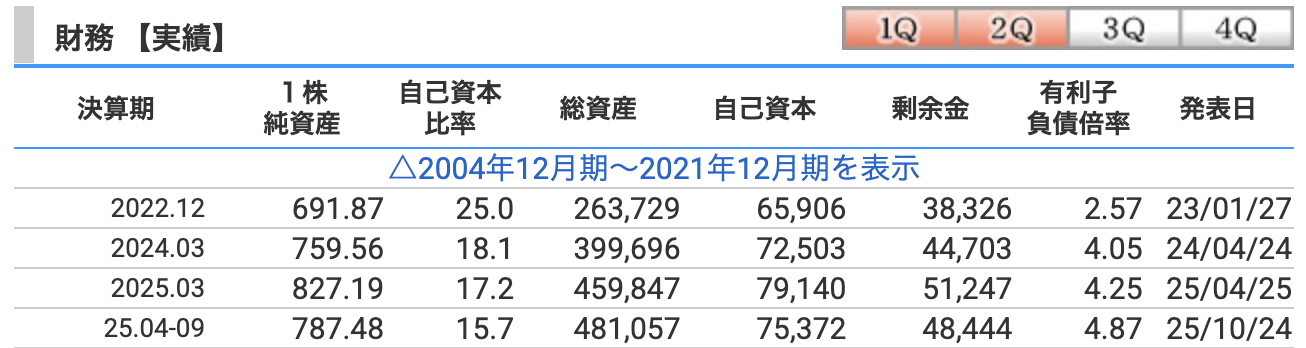 まず注目したいのは、自己資本比率15.7%(2025年9月末時点)。