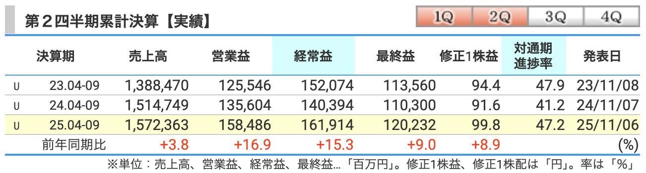 営業外の収益も含めて、会社全体の稼ぐ力が非常に安定していることを裏付けています 。為替の影響などもありましたが、本業の勢いがそのまま利益を押し上げました 。