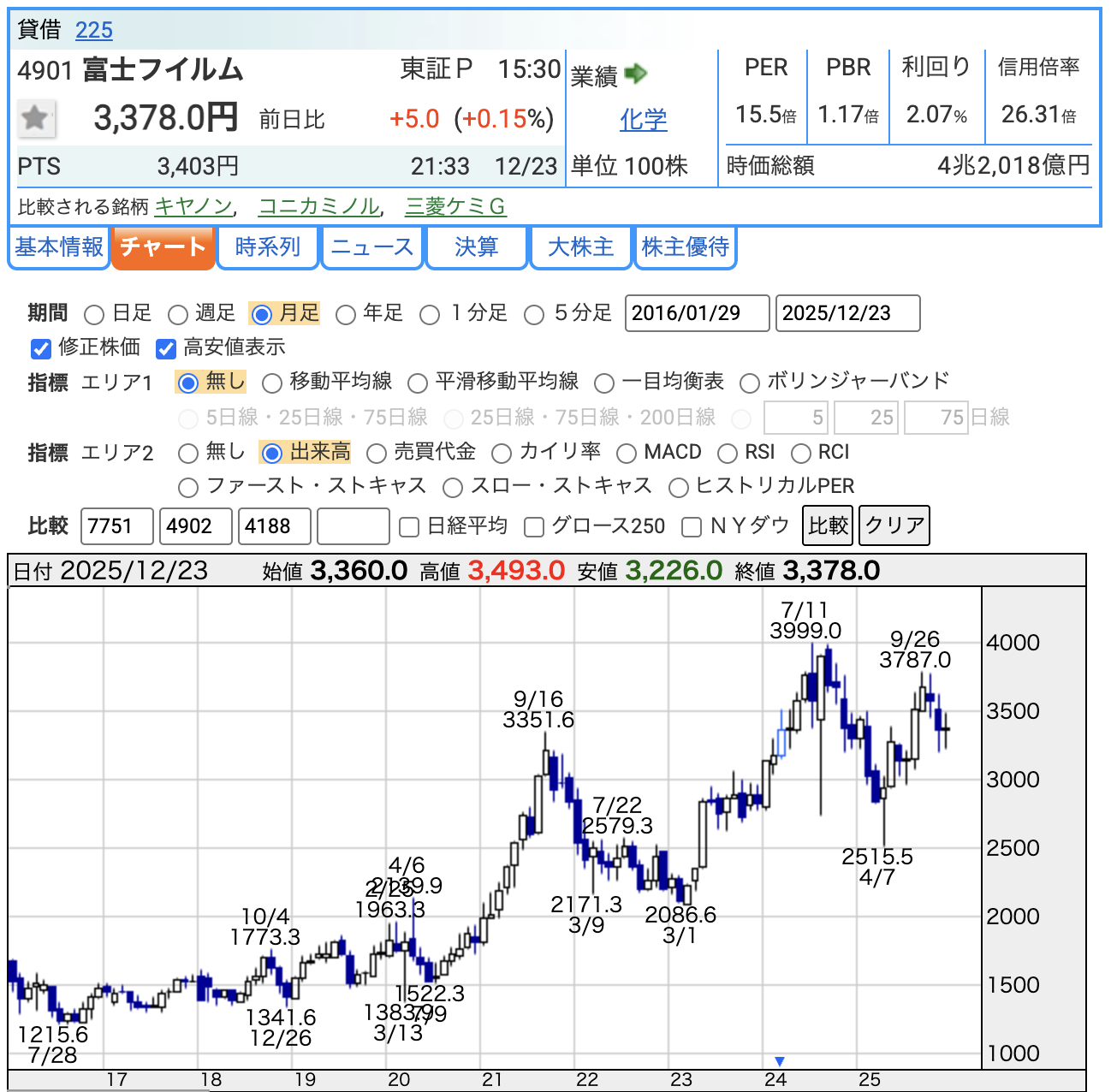 一般的な財務の目安から見てもこの数字は十分に低く、現在の富士フイルムは「非常に大きな財務余力(レバレッジをかける余地)」を残しながら、攻めの投資を行っている状態と言えます。