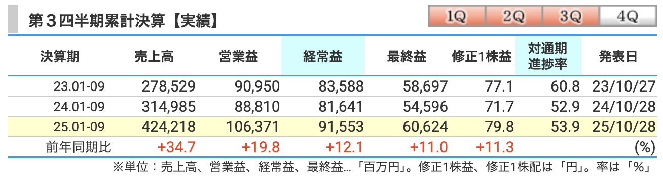 売上・利益ともに大幅増で、過去最高益ペースをしっかりキープしています。
