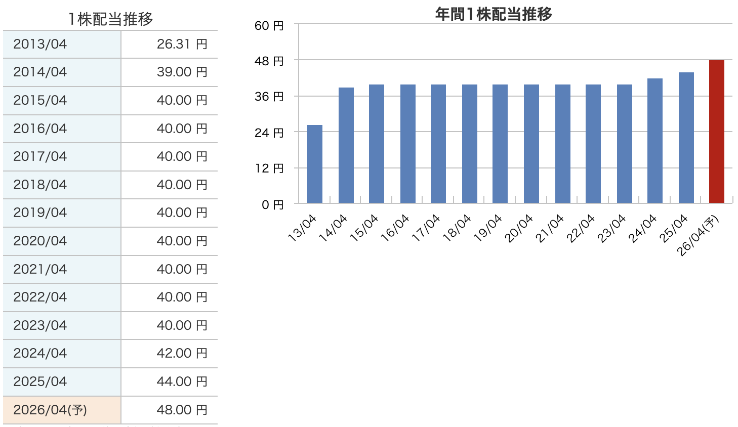 こんな感じで、ここ数年は“緩やかな増配基調”になっています。