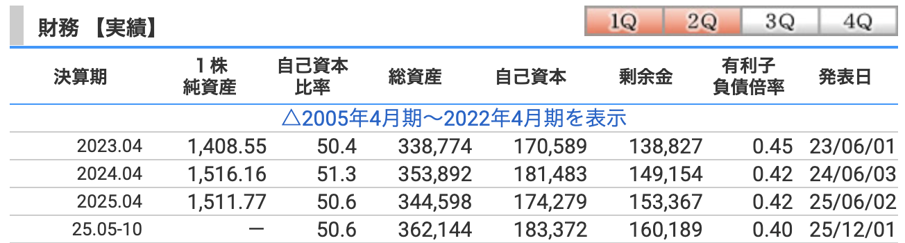 ■ 自己資本比率:50%台の安定運転(50.4〜51.3%)