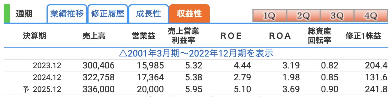 - ROA(総資産利益率):3.69%(通期予想)