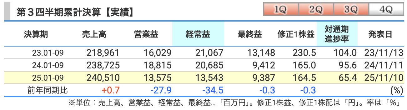 - 中国事業の黒字維持:最大の焦点は、構造改革を進めてきた中国本土事業が通期で黒字を達成できるかです。第3四半期時点では黒字を維持しており、計画達成への重要な鍵となっています。