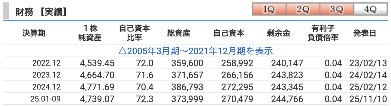 - 自己資本比率:72.3%(2025年12月期 第3四半期時点)