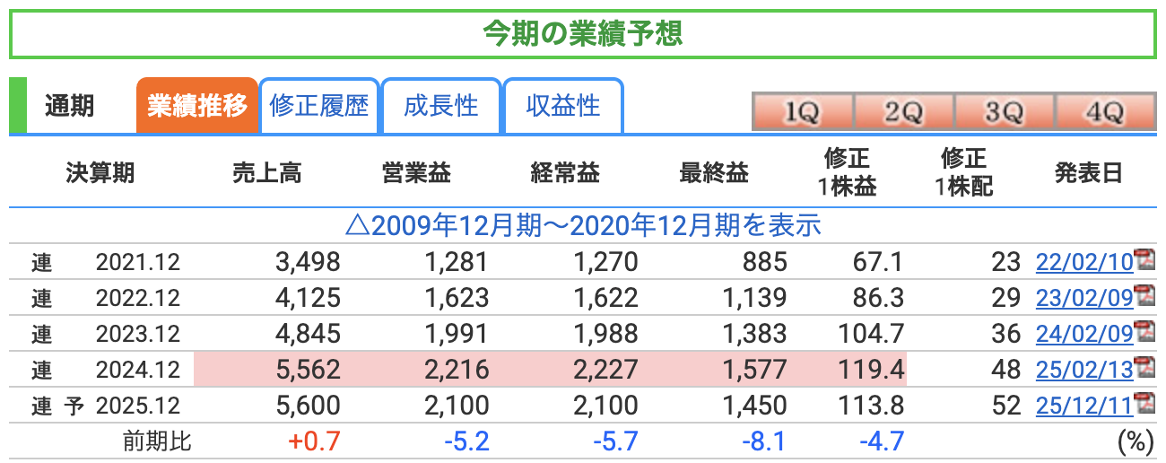 - 分析:修正後も高い水準を維持している背景には、同社が「情報」という在庫を持たないデジタルサービスを主軸にしていることがあります。