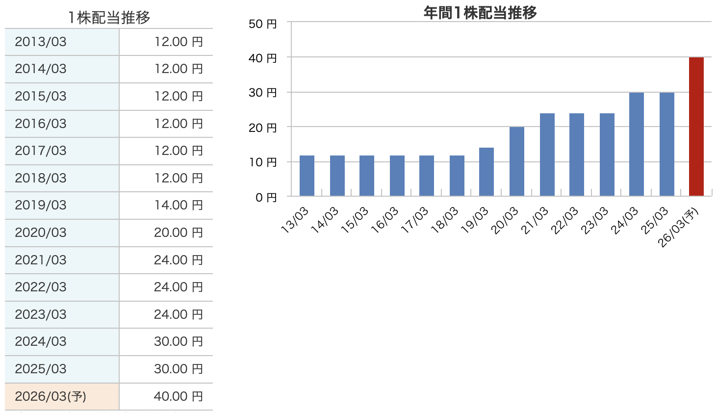 そして直近の2026年3月期、つまり今期の予想は1株あたり40円