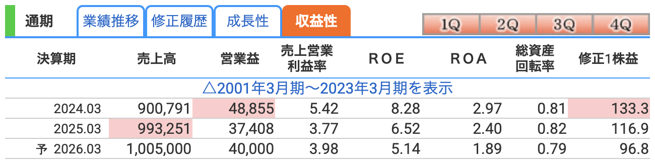ここまで見ると、「売上も利益も安定してるし、そんなに問題ないじゃん」と思うかもしれません。