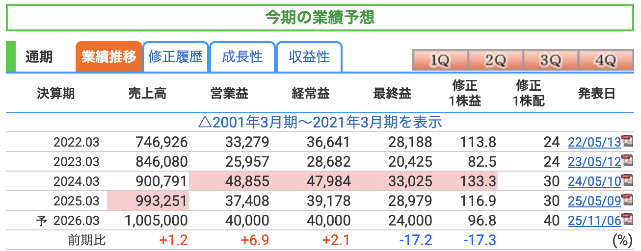 つまり、本業が悪化しているわけではなく、純粋に“前年の特需が消えた”という構造的な要因です。