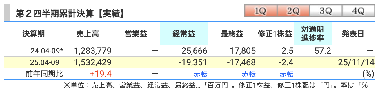本業ではなく、金融市場の急変の影響をモロに食らった期。