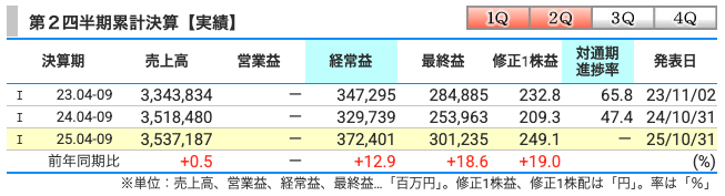 安定した利益体質が続いていることが分かります。