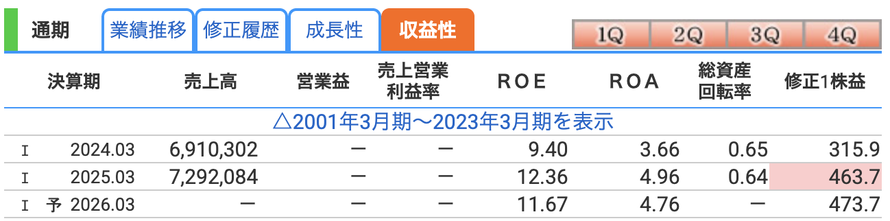 そして、**ROA(総資産利益率)は4.76%(前期4.96%)**とやや低下しています。