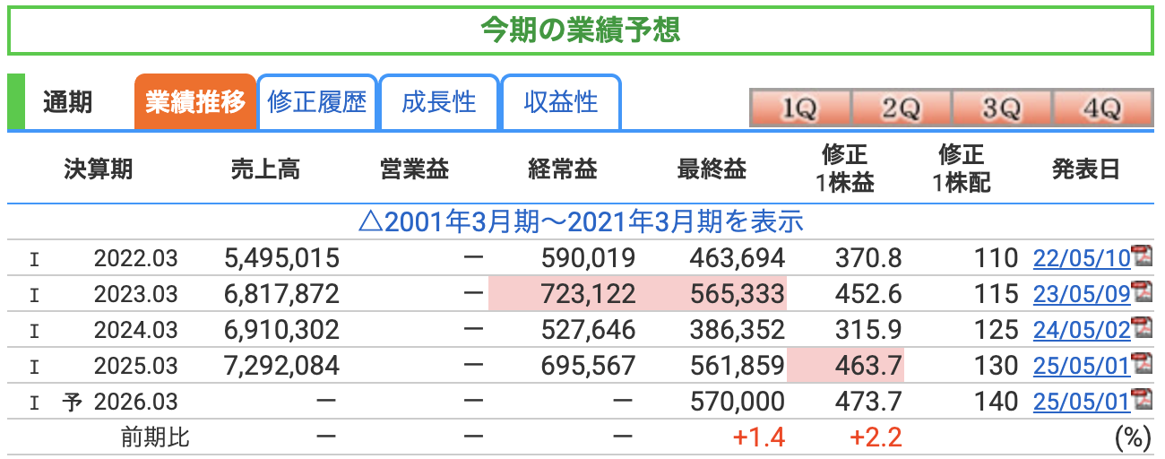業績予想ですが、会社側は2026年3月期の**最終利益を5,700億円(前年比+1.4%)**としています。