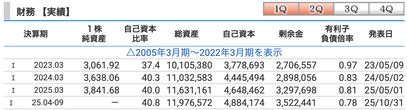 つまり、借金に頼らず安定したバランスシートを維持しているということです。