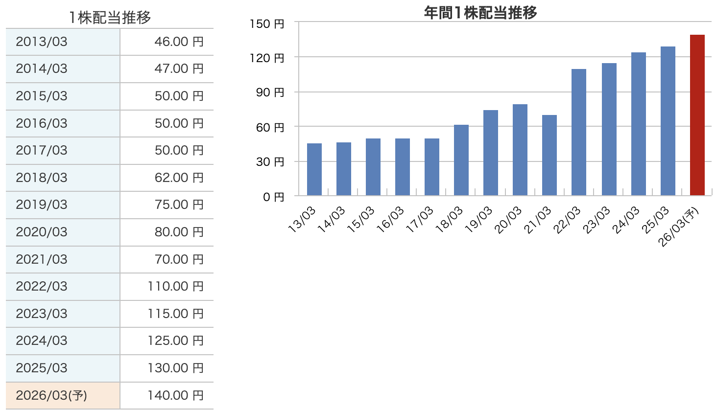 昨年の130円からしっかり10円の増配です。