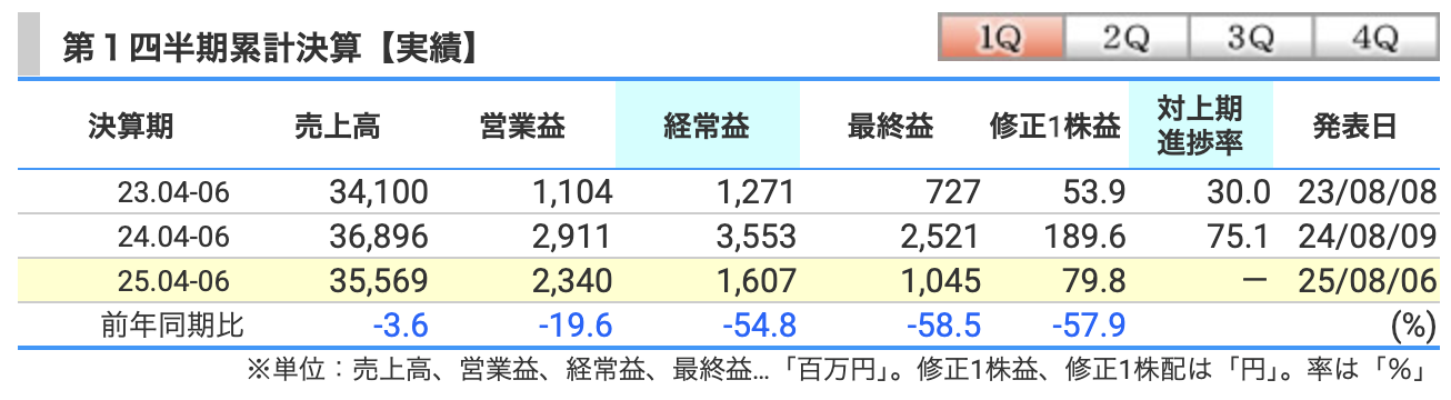 2026年3月期・第1四半期、つまり4月から6月の決算が出ました。