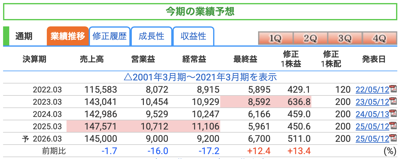 一時的に減益になっても、しっかり配当を守る姿勢を貫いています。