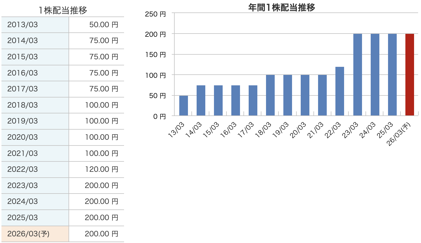 今回も年間配当200円を継続。